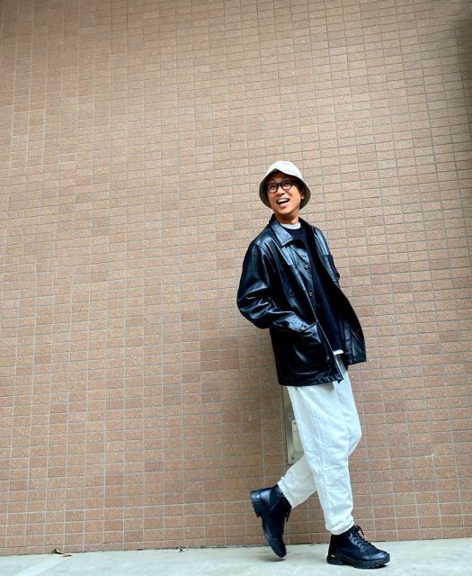 レザーとは言え、威圧感を与えない、ハードになり過ぎないコーディネートを心がけています。