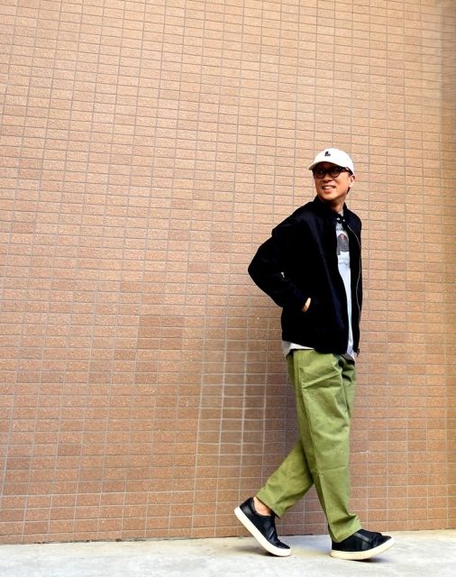 今日は顔料染め加工が特徴的なテーパードパンツです。