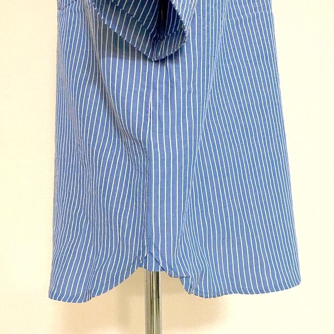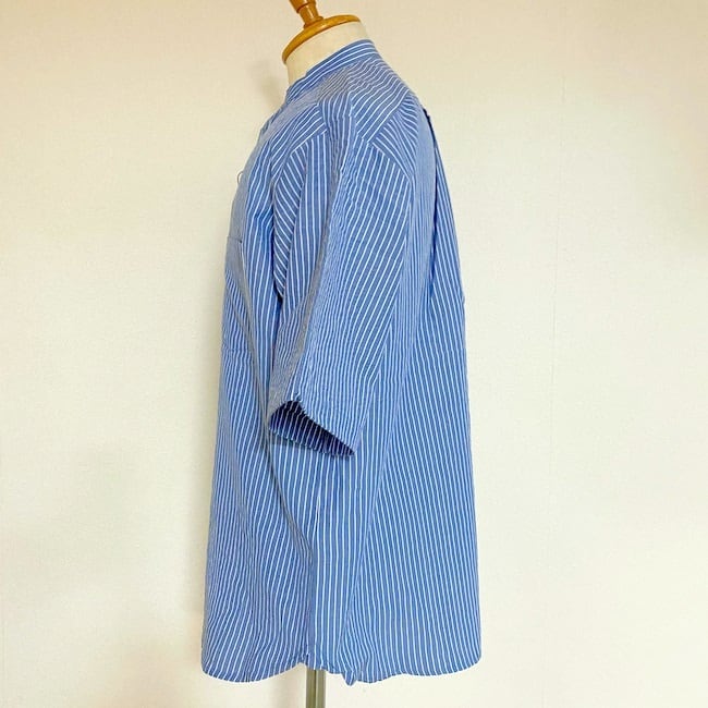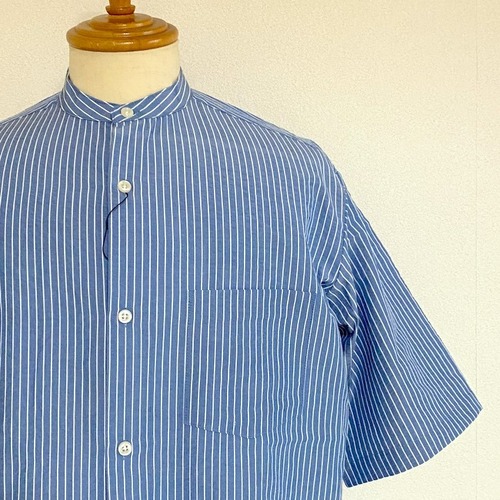 Stripe Sucker Band Collar S/S Shirts Blue