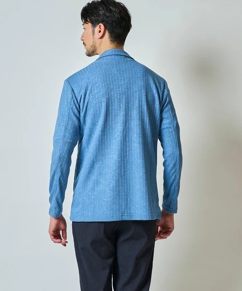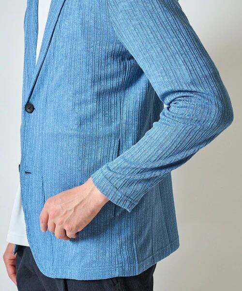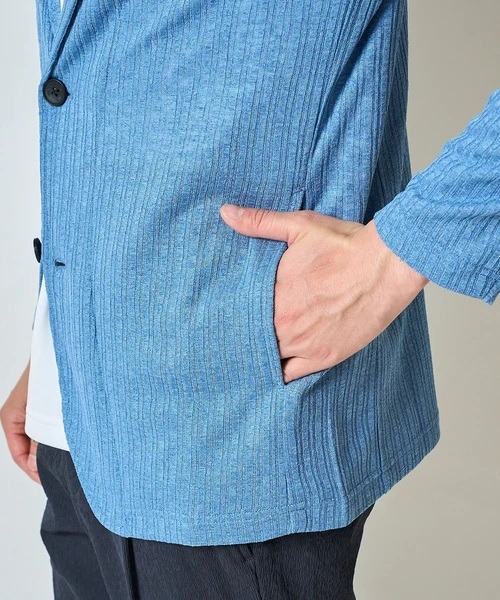 麻のような素材で、ストライプ調の凸凹に織り上げたサマーテーラードジャケット