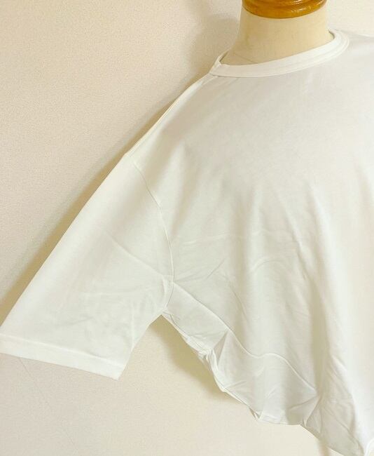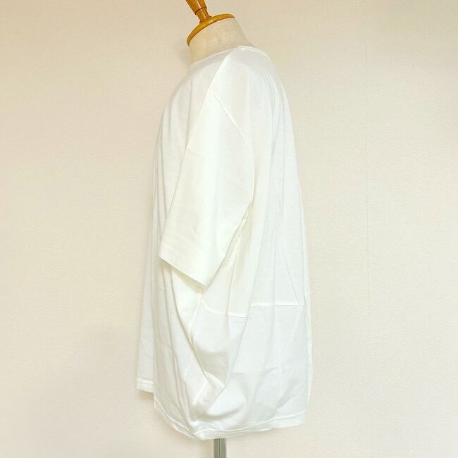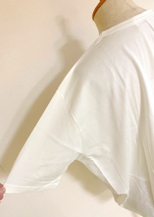 ソフト仕上げされたコットン天竺素材を使用したバルーンカットソー。たっぷりと生地を使い、特殊なパターンと縫製技術でたるませたコクーンのようなフォルムが特徴的な1枚。前身頃には切替を入れずスッキリ見せ、後ろ身頃は切替を入れたバルーンデザインに仕立てました。