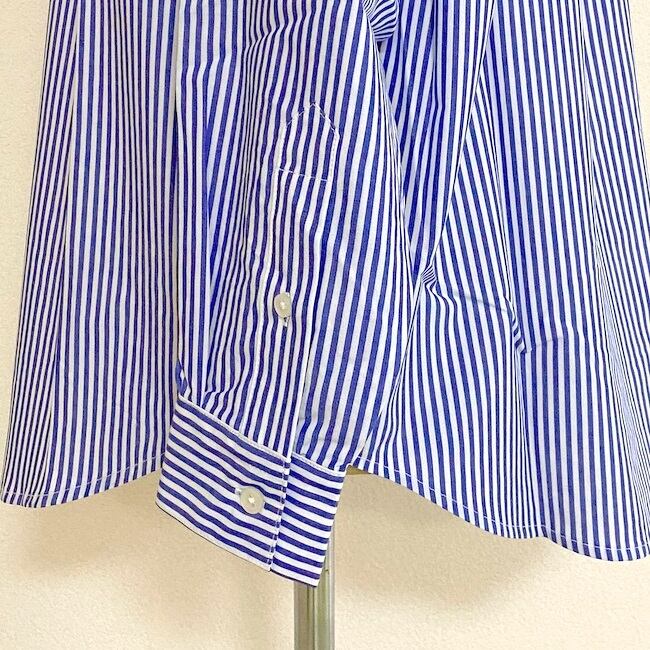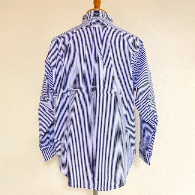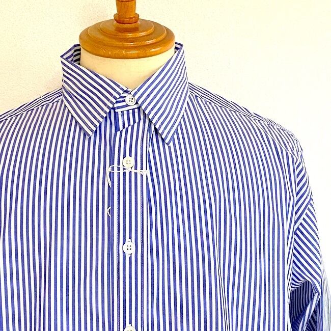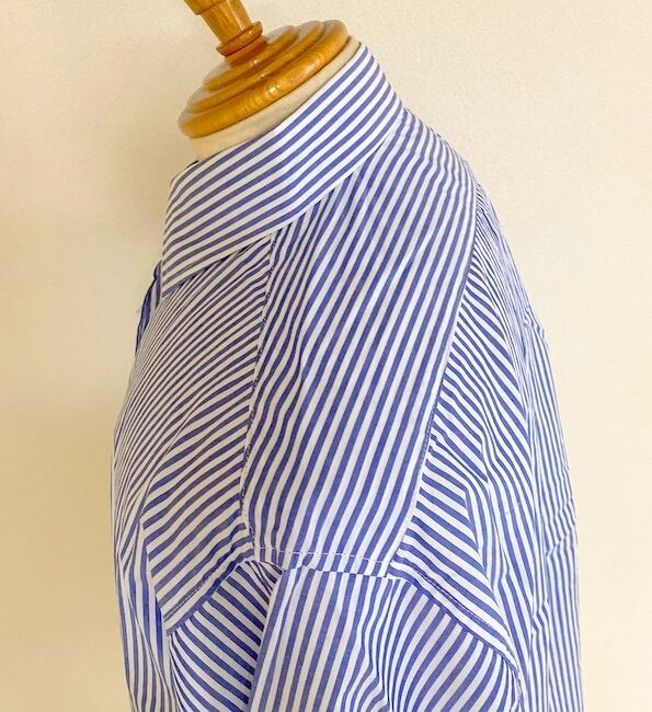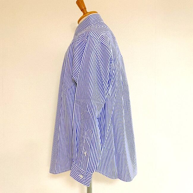 爽やかな印象のストライプ生地を使用したレギュラーカラーシャツ。生地は柔らかで優しい肌触りが特徴のコットン100%の素材を使用しています。