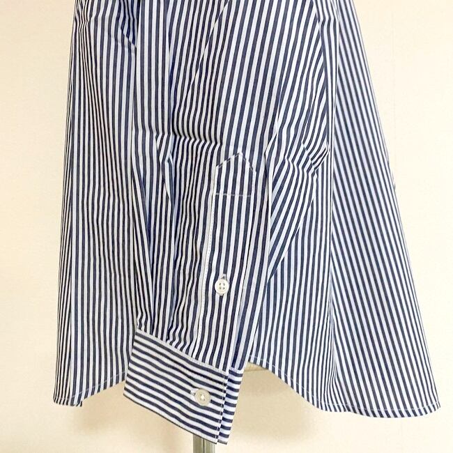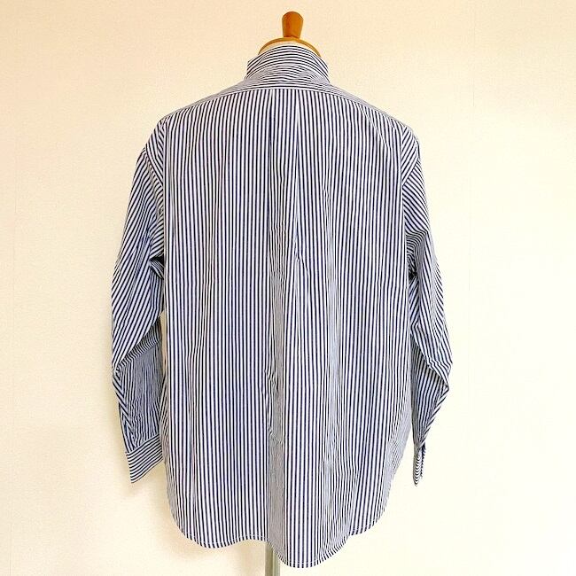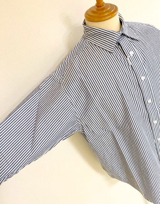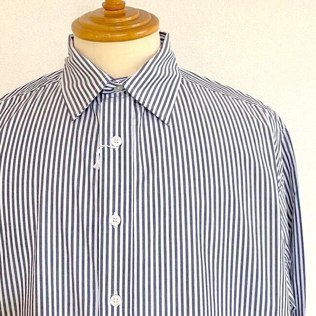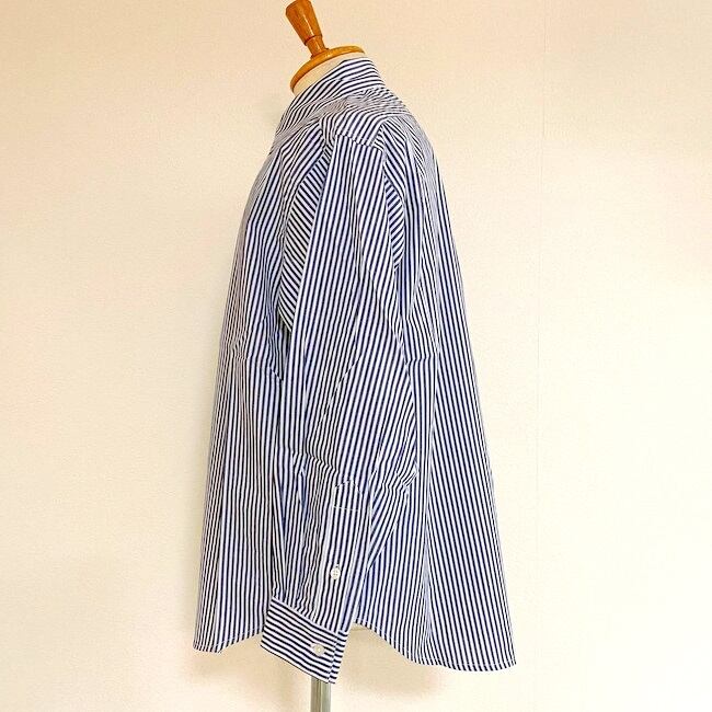 爽やかな印象のストライプ生地を使用したレギュラーカラーシャツ。生地は柔らかで優しい肌触りが特徴のコットン100%の素材を使用しています。