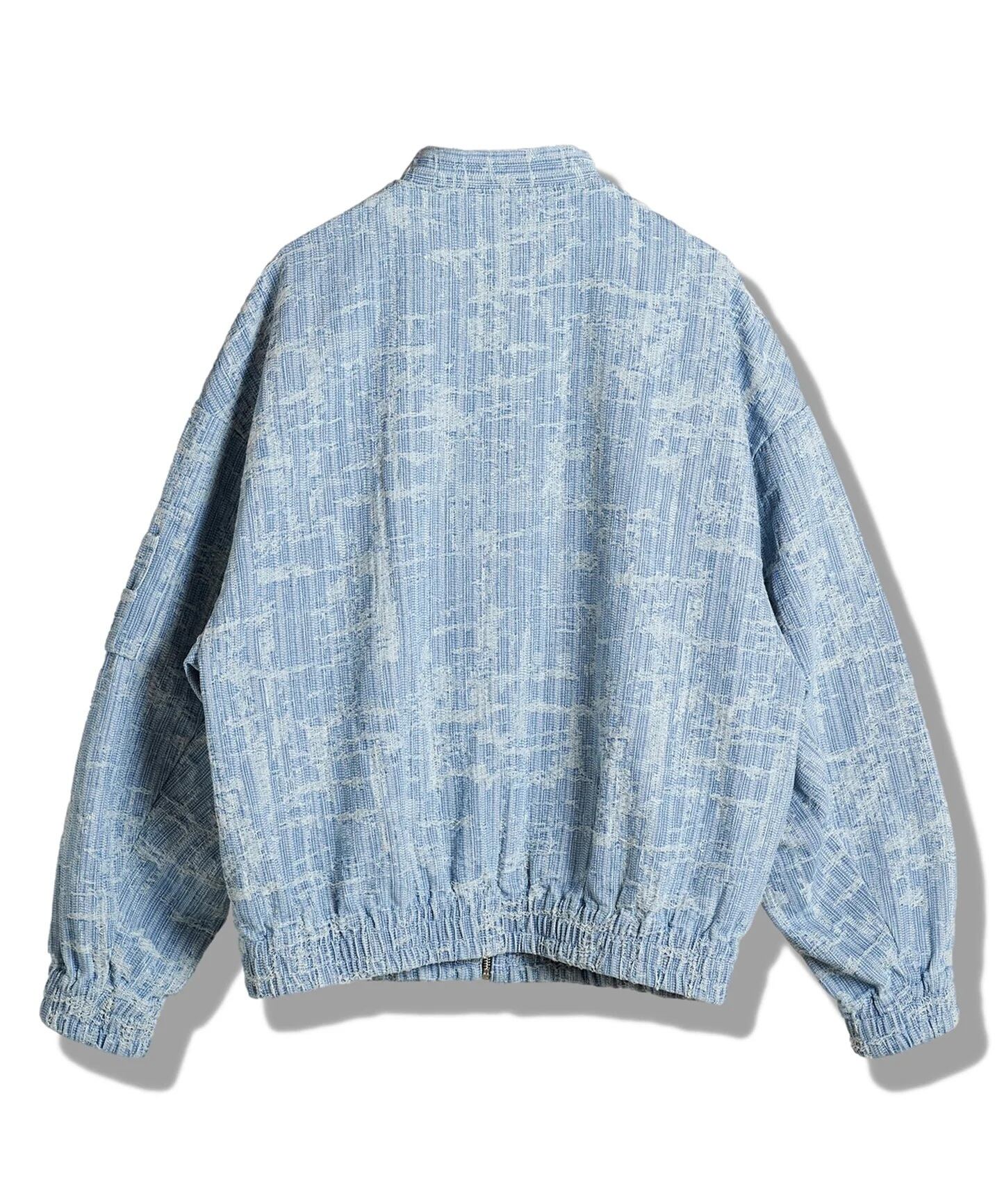 Jacquard Denim Big Band Collar Blouson Light Blue