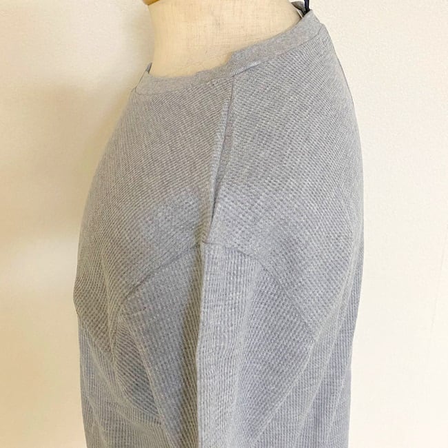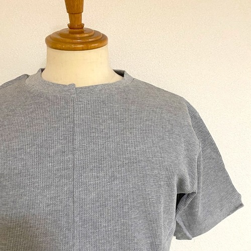 Waffle Asymmetry Crew Neck S/S Sweat Gray