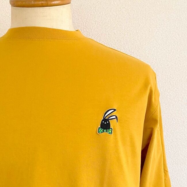 Bow Tie One Point Embroidery L/S T-shirts Mustard