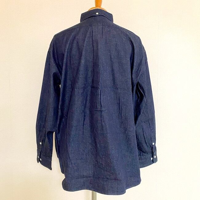 「備後」8オンス ムラデニム ボタンダウン ボクシー Aライン 長袖シャツ