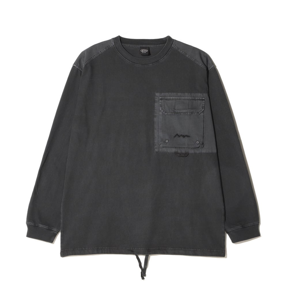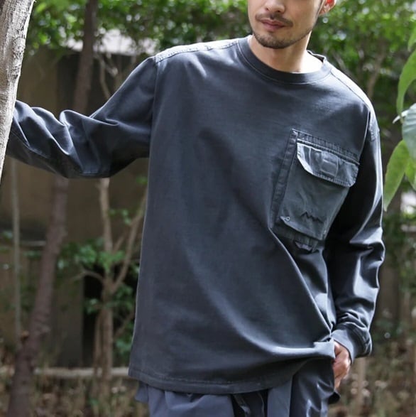 ・MANASTASHで人気の、布帛のエルボーパッチ、マルチポケットが付いたTシャツ