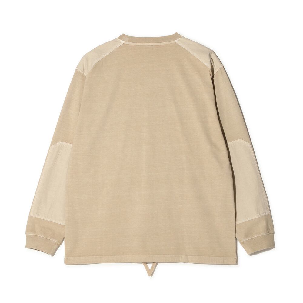 ・MANASTASHで人気の、布帛のエルボーパッチ、マルチポケットが付いたTシャツ