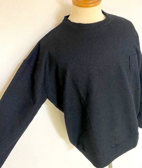 程よい厚みのある生地は1枚着からインナー使いまで、長く着まわして着用できるアイテムです。