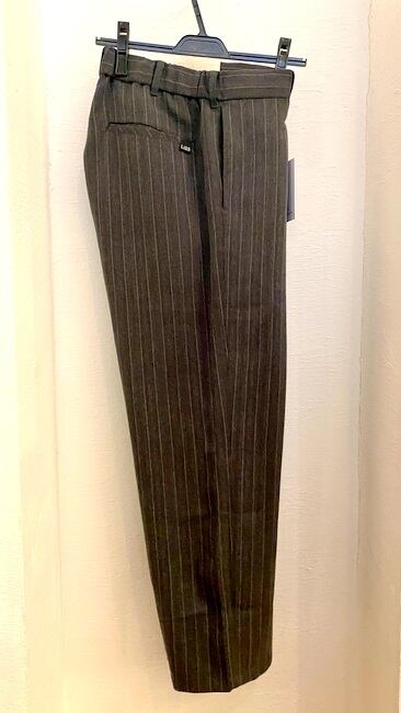 裾にはダーツを入れることで、通常のスラックスパンツとは違ったこなれ感のあるシルエットを実現しています。どんなアイテムとも相性が良いのでベーシックスタイルからストリートスタイルまで幅広い着こなしに対応できる万能アイテムです。