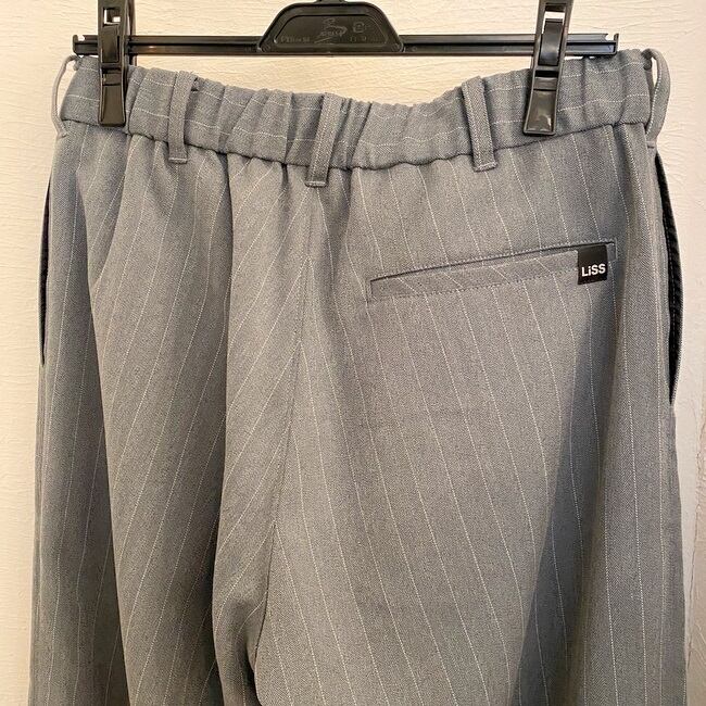 裾にはダーツを入れることで、通常のスラックスパンツとは違ったこなれ感のあるシルエットを実現しています。どんなアイテムとも相性が良いのでベーシックスタイルからストリートスタイルまで幅広い着こなしに対応できる万能アイテムです。