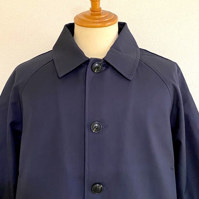 ポケットは脇線に沿ったサイドスリットポケット。袖は一枚袖のラグランスリーブ。極力無駄を省いたシンプルなデザインなので、いつまでも飽きがこないクローゼットの定番になり得るコートです。サイズをリサイズしての再登場。日本製。