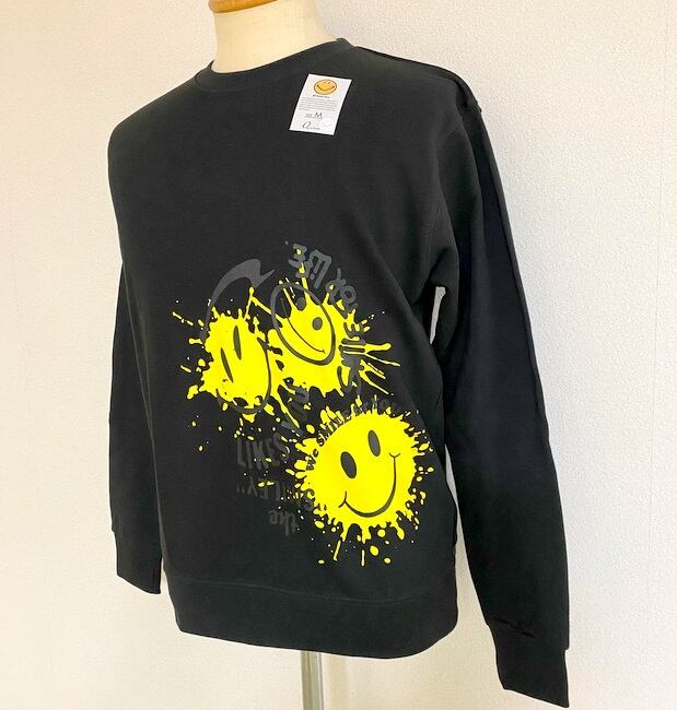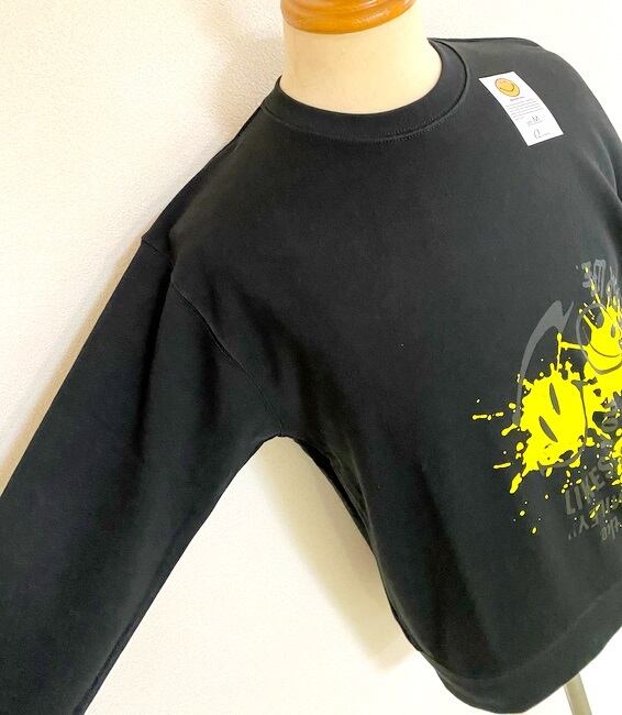 ウォールアート調のスマイリーフェイスがプリントされたクルーネックスウェットシャツ。コットンポリエステルの裏毛素材を使用。