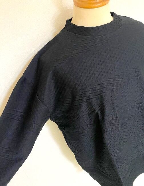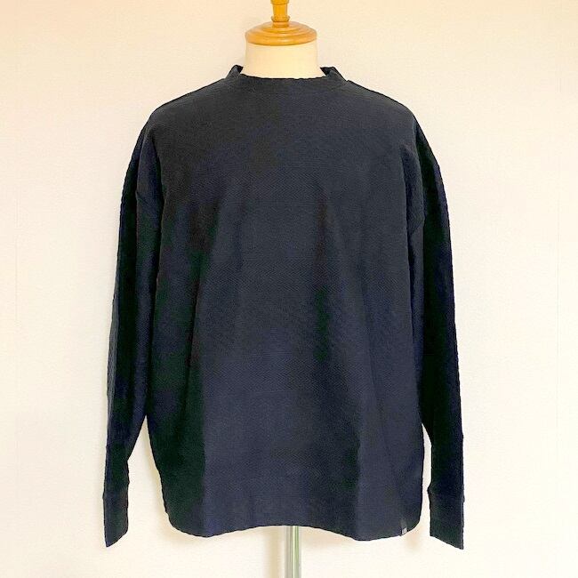 やや厚みのあるジャガード柄の生地を使用したクルーネックカットソー。