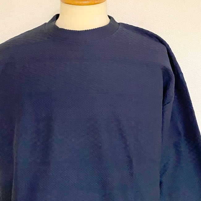 やや厚みのあるジャガード柄の生地を使用したクルーネックカットソー。