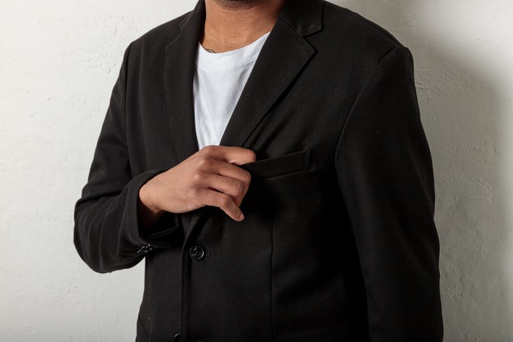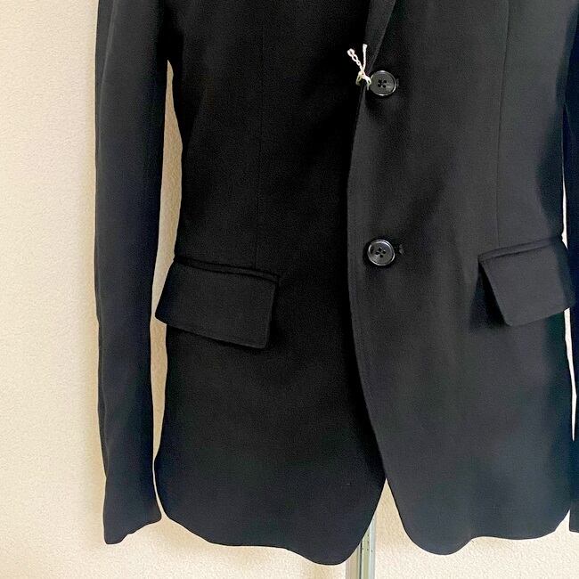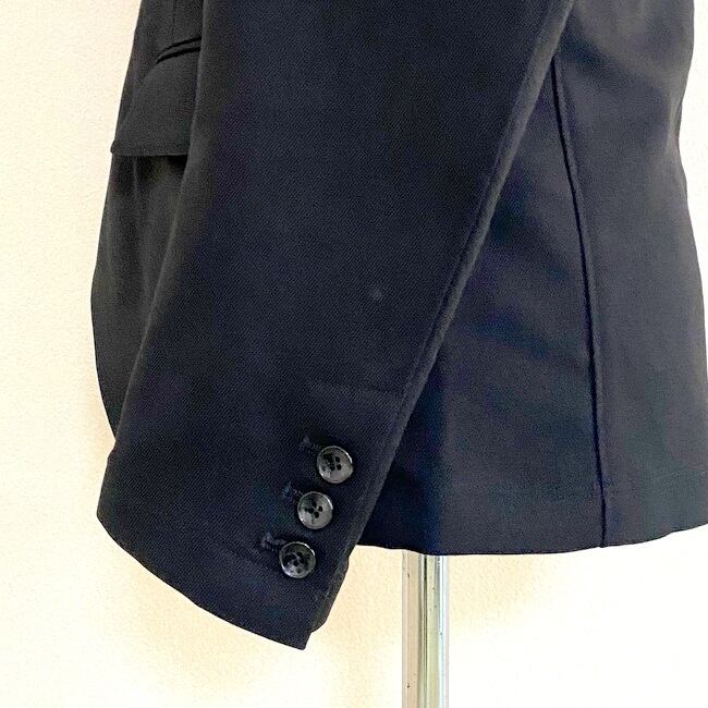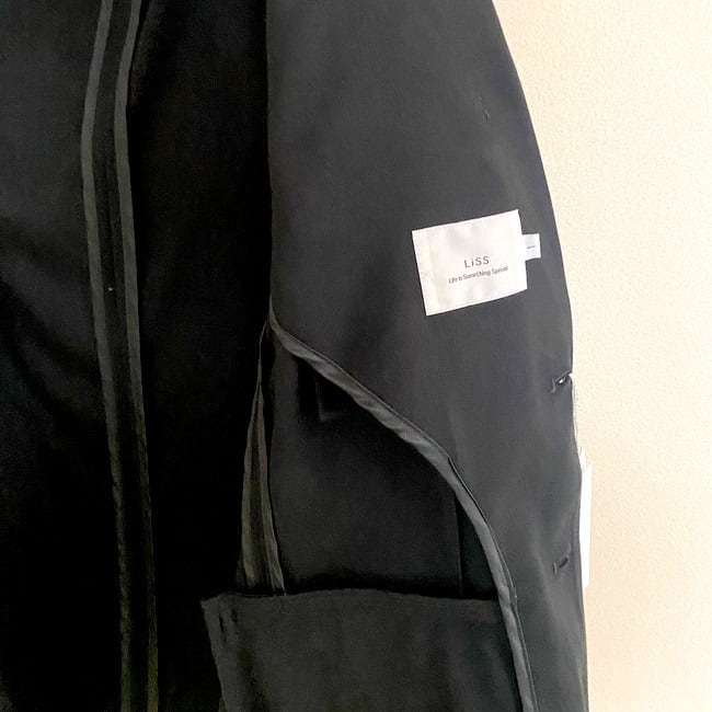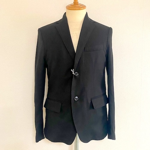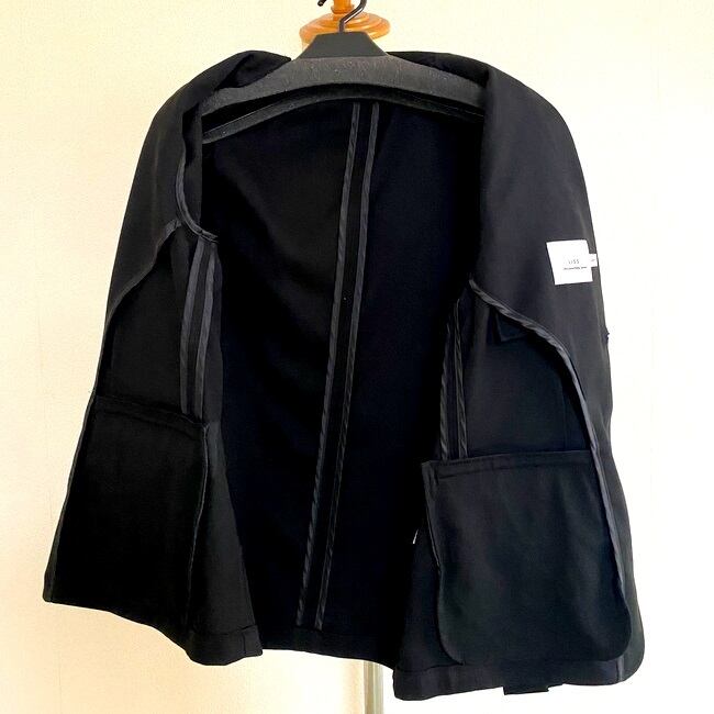 普段着のハオリとしてだけでなくオフィスカジュアルにも適した、綺麗なシルエットのテーラードジャケット。ストレッチ混のポリエステルレーヨン素材を使用しています。本切羽、力ボタン、裏パイピング始末、ポケットはフラップ付きの切りポケットなどディティールも凝っています。スマートなシルエット、癖のないデザインは汎用性の高い1枚。