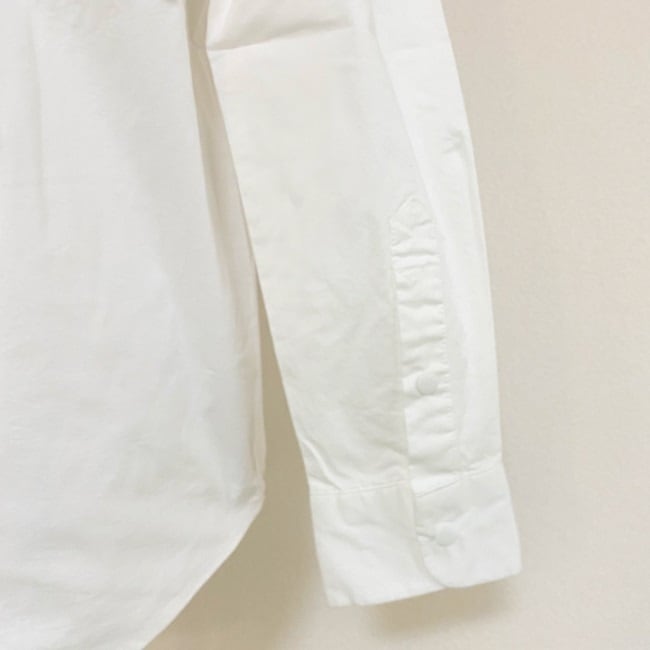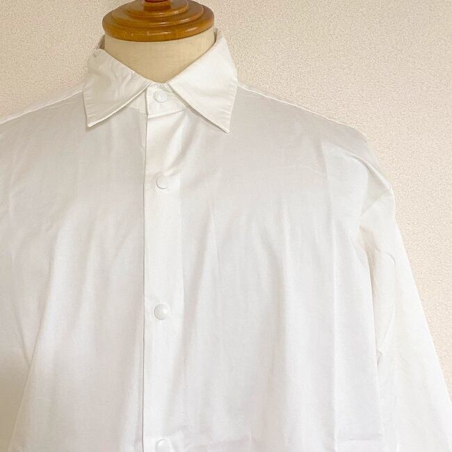 さりげないドットボタンがポイントのレギュラーカラーシャツ。ストレッチ性のあるタイプライター生地を使用しているため、動きやすさと快適さが両立しています。シンプルながらも洗練されたデザインは、普段使いからビジネスシーンまで幅広く活躍します。