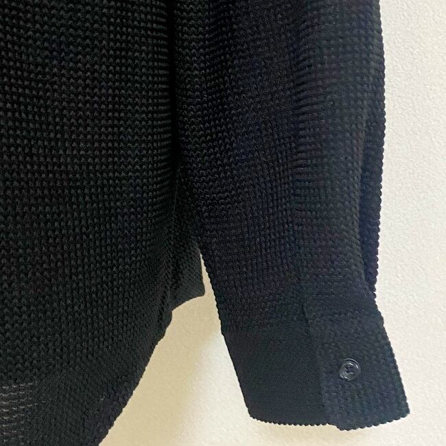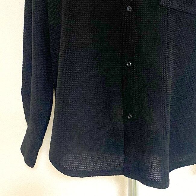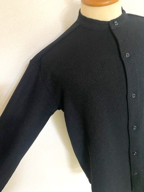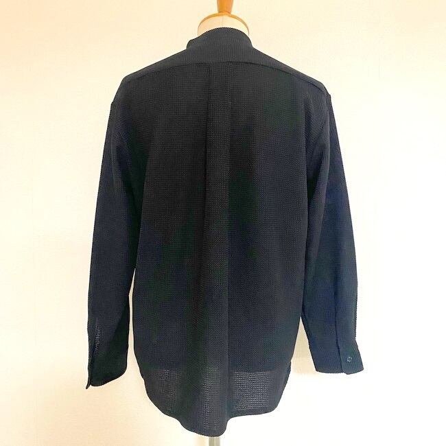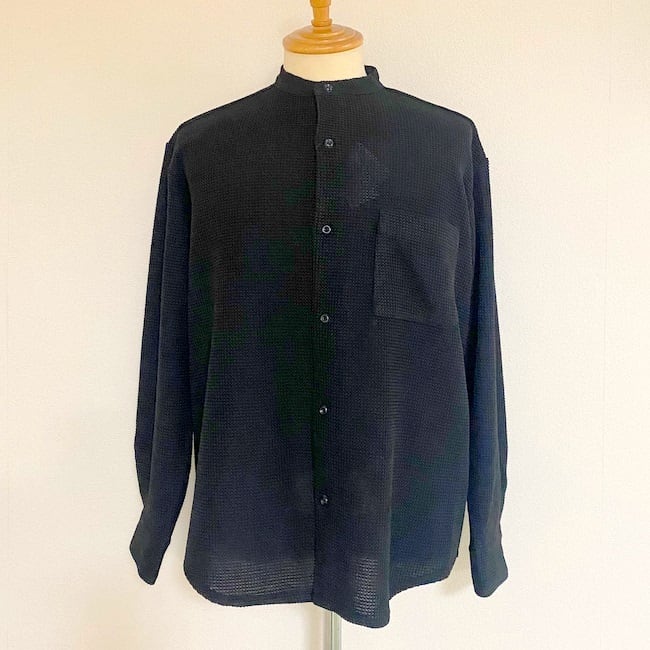 ラッセル編み特有の凹凸のある生地を使用したバンドカラーシャツ。