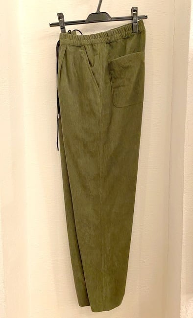 ナチュラルなストレッチ性のあるポリエステル糸をベースにしたコーデュロイ風素材を使用したイージーパンツ。ワンタック入りで程よい緩さのあるリラックステーパードシルエット。落ち感のいい素材ですので見た目のボリュームはでません。皺にもならずイージーケアな1枚。