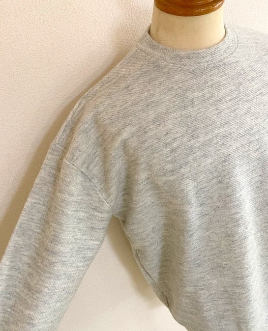 ウールインレイ素材を使用したクルーネックスウェットシャツ。