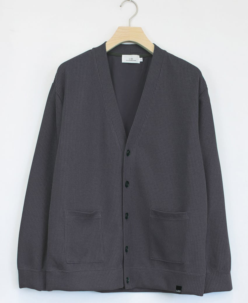 編み立てるニットではなくニット風生地を使用するとこによってカットソーのような柔らかな着心地に仕上げたニットソーカーディガンです。