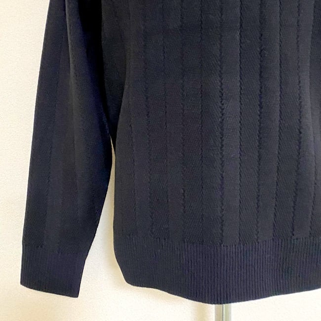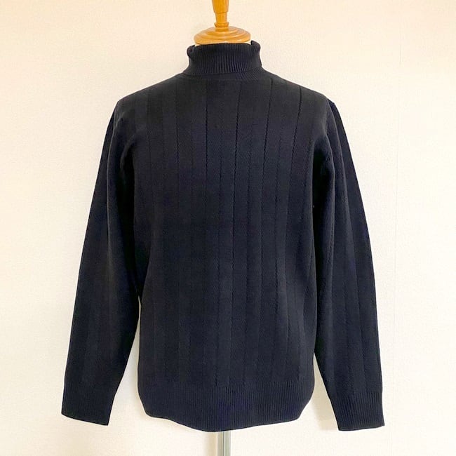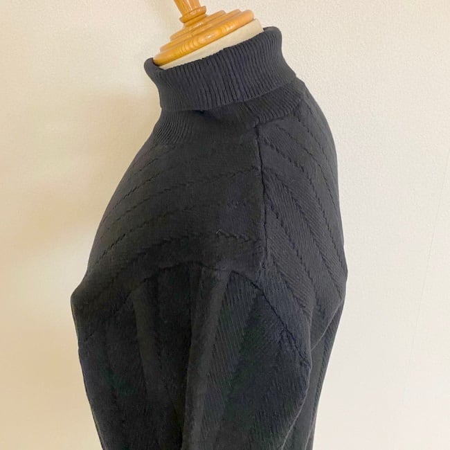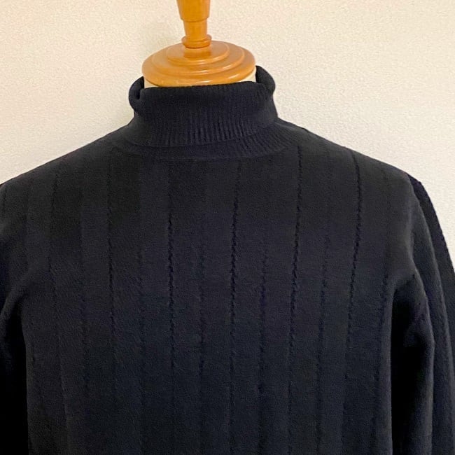 ジャケットやコートのインナーに入れたときに合うようなタートルネックの高さにしています。