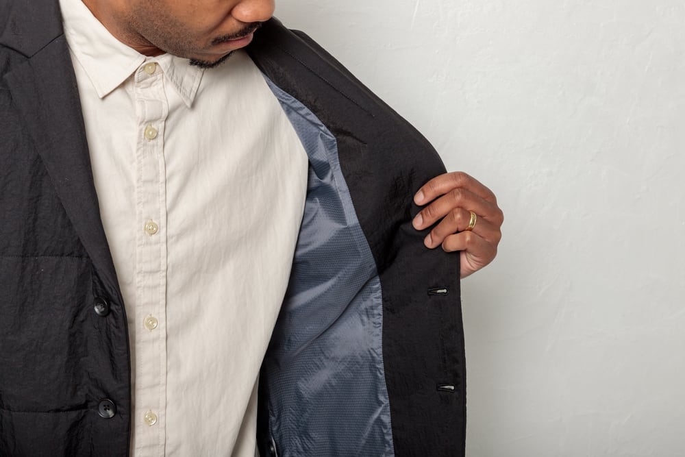 撥水・防水加工を施したナイロン素材を採用し、柔らかで超軽量な中綿を詰め込んだテーラードジャケットです。ドレッシーなテーラードジャケットにキルティングステッチを施すことで、ややスポーティーながら品のあるアイテムにアレンジしています。