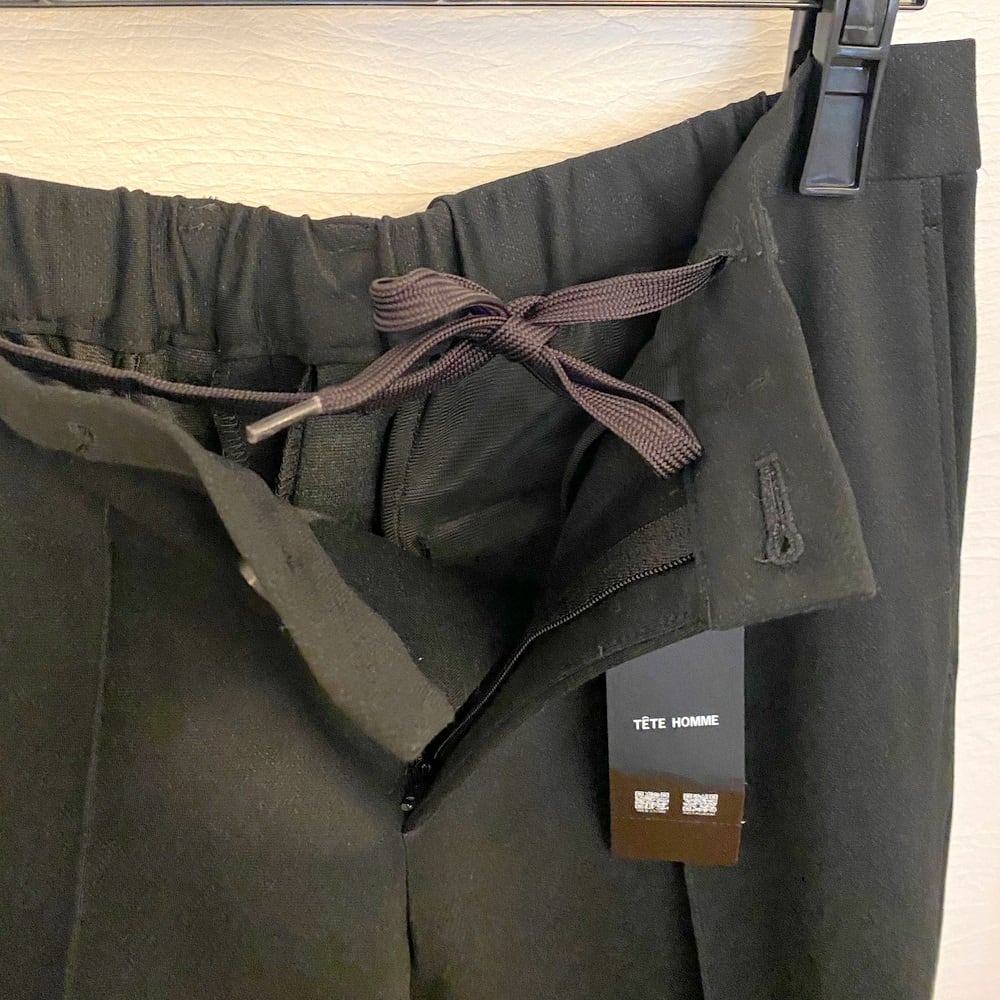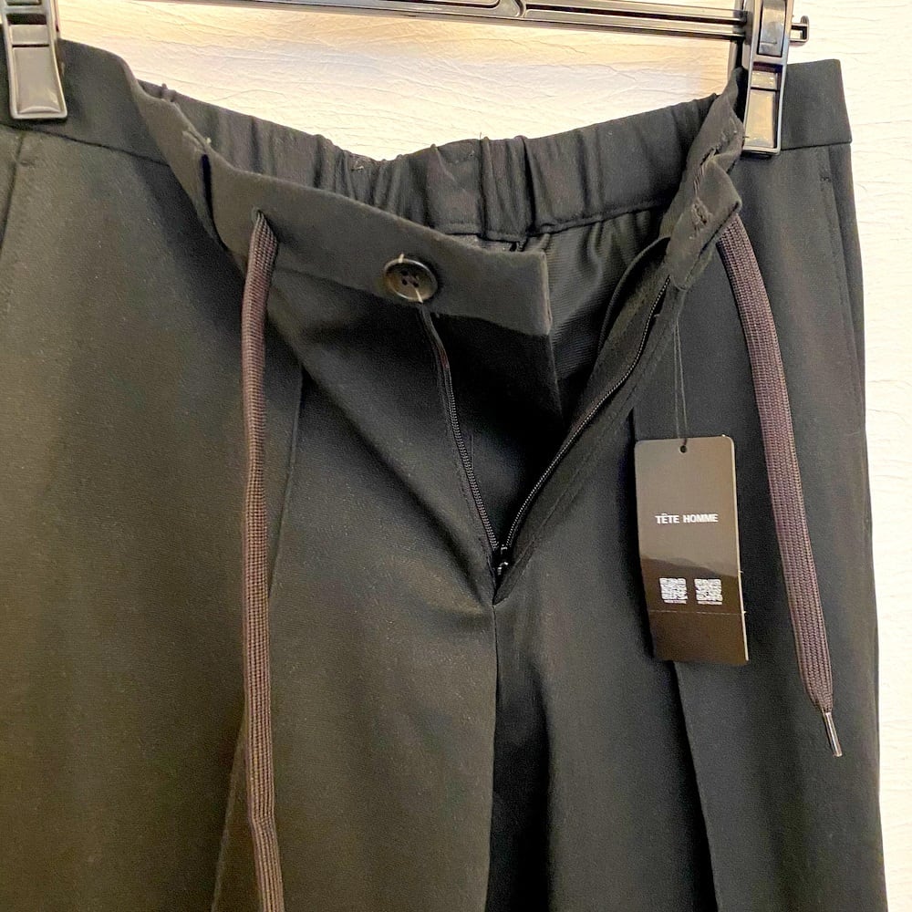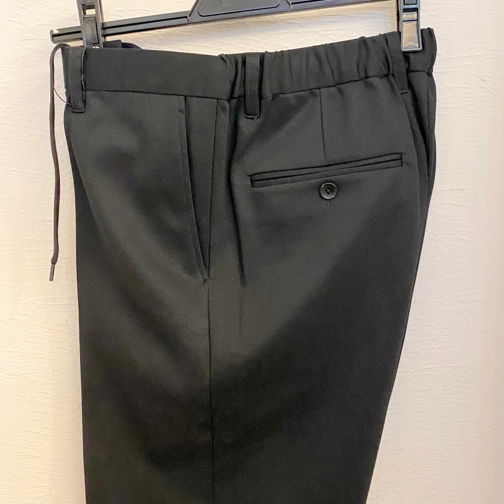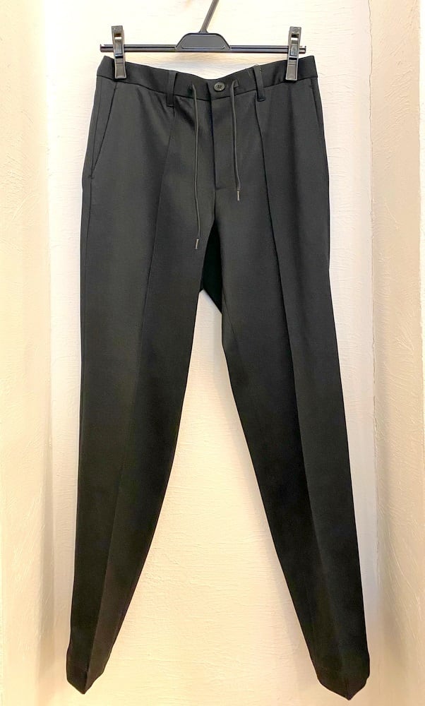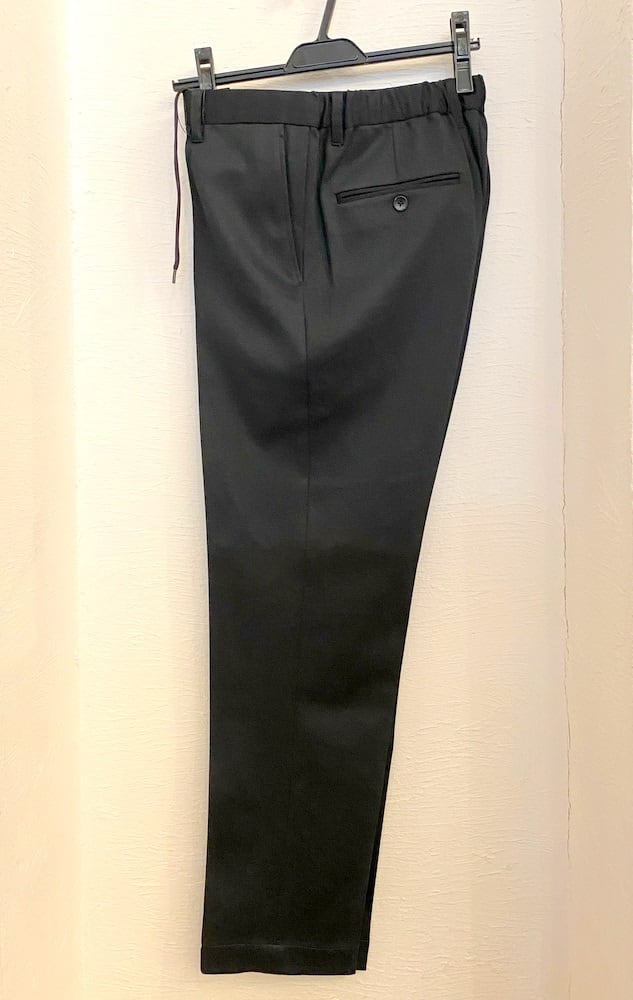ソフトストレッチのニットポンチを使用したコンフォータブルパンツ。