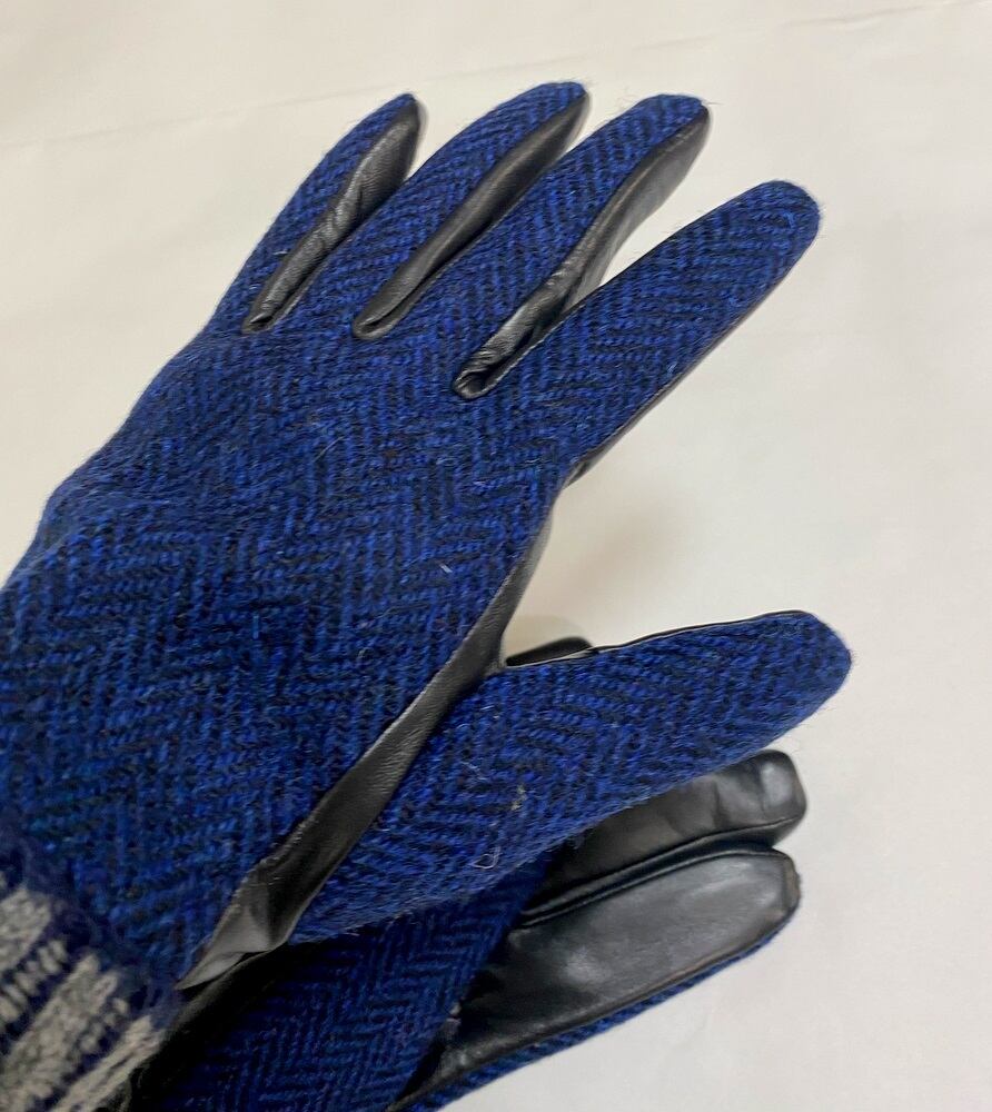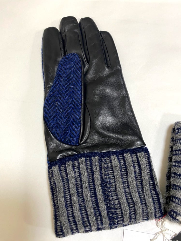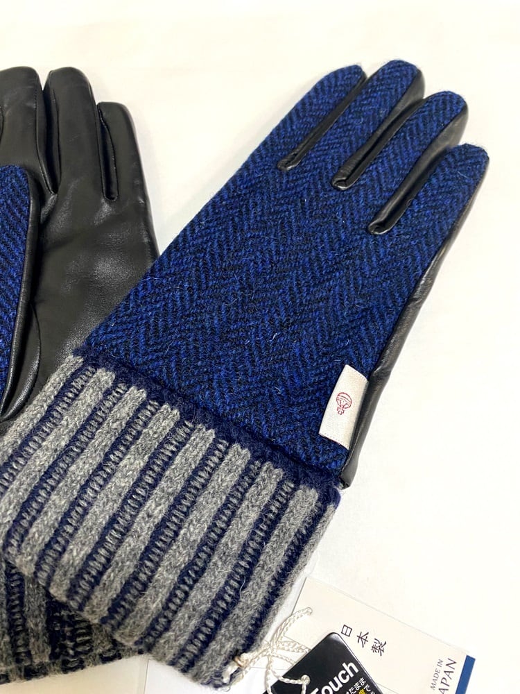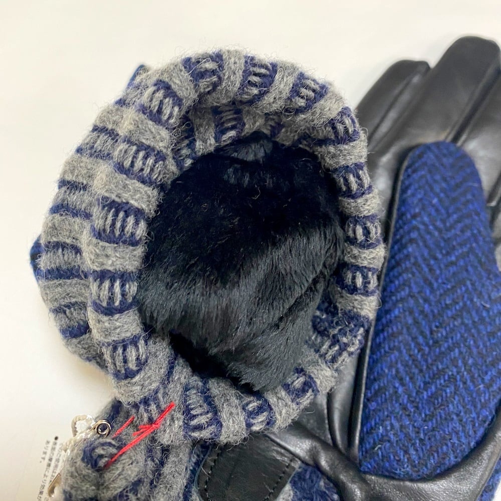 Lamb Leather × Harris Tweed Combination Glove Navy