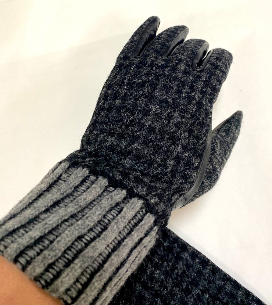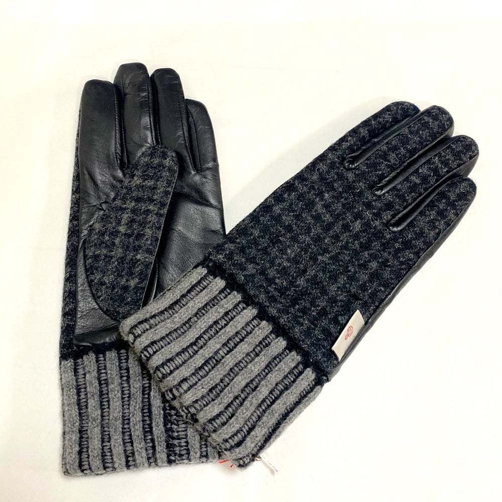 Lamb Leather × Harris Tweed Combination Glove Charcoal