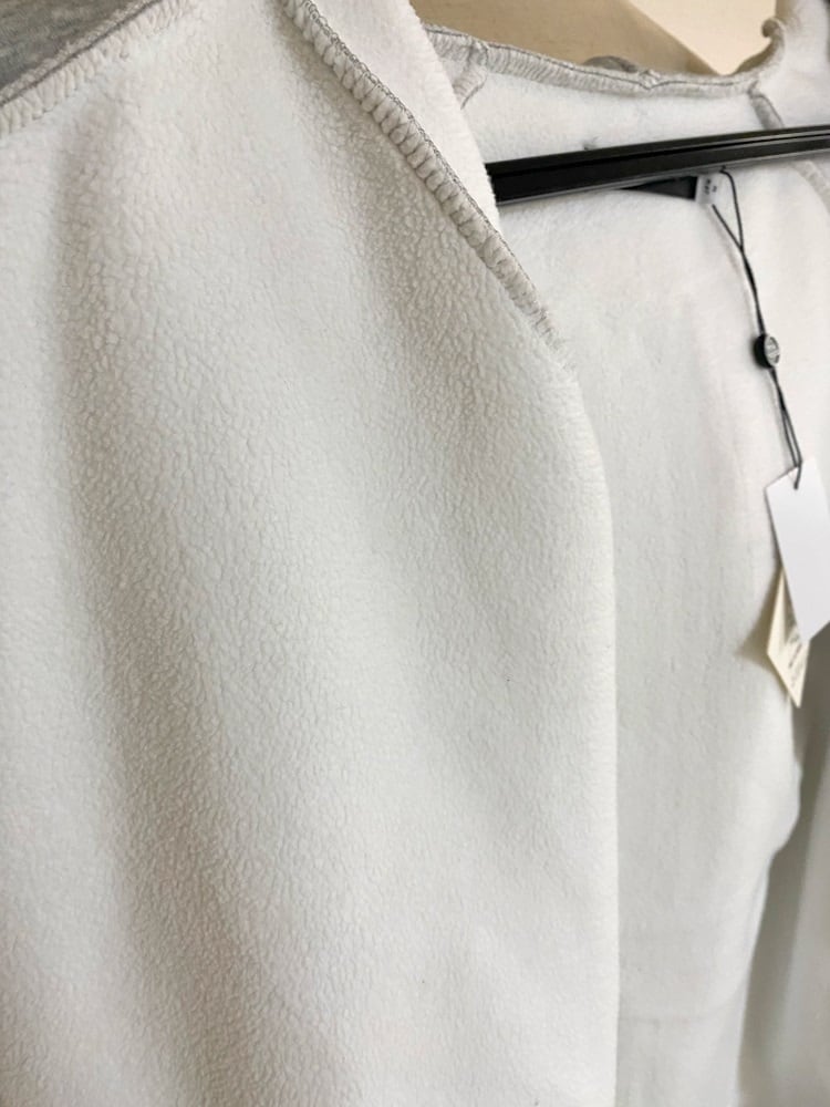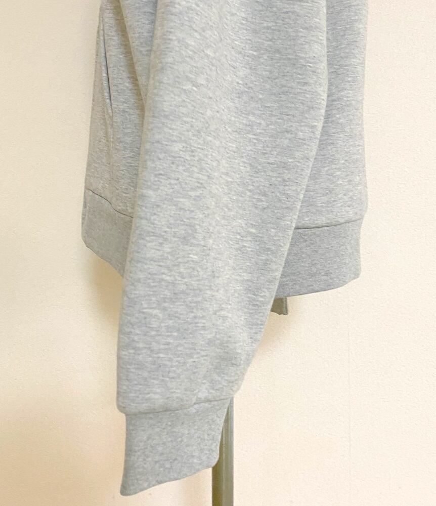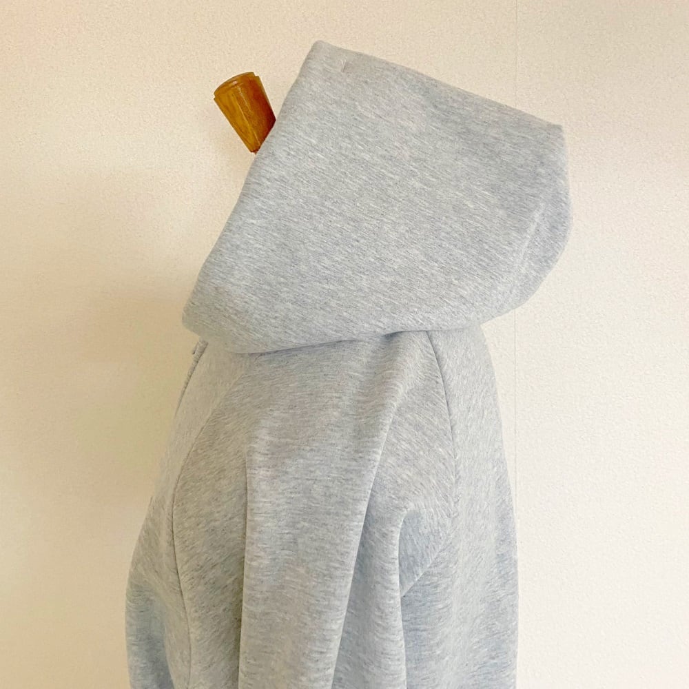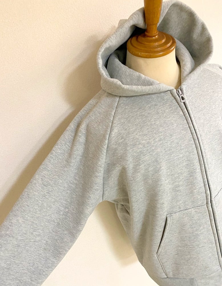 生地の裏面が柔らかなフリースになっているダブルフェイス生地を使用。表面はつるりとした表情に仕上げていて、きれい目な印象です。
