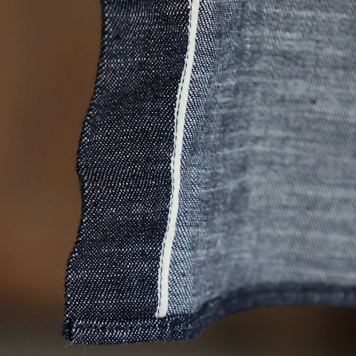 備中備後(びっちゅうびんご)と呼ばれる、デニムの産地 ” 広島県 福山市 “ の機屋で織られた生地です。旧式の力織機(シャトル機)でゆっくりと丁寧に織り上げられた、6ozセルヴィッチデニム。力織機で織られた生地は薄くてもコシがあり、洗いを繰り返すと立体感のある生地の表情が出ます。