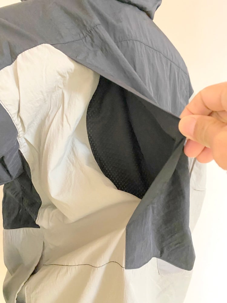 ・背中は裏地がメッシュになったベンチレーション仕様で、抜群の通気性。