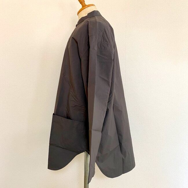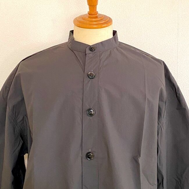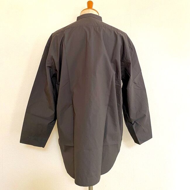 スリーピングシャツをモチーフにした、Aラインでドロップショルダーのかなりゆったりとしたシルエット。大きめなボタンが着こなしに良いアクセントを与えてくれます。ジャケットの上からでも気軽に羽織れるようなデザインです。
