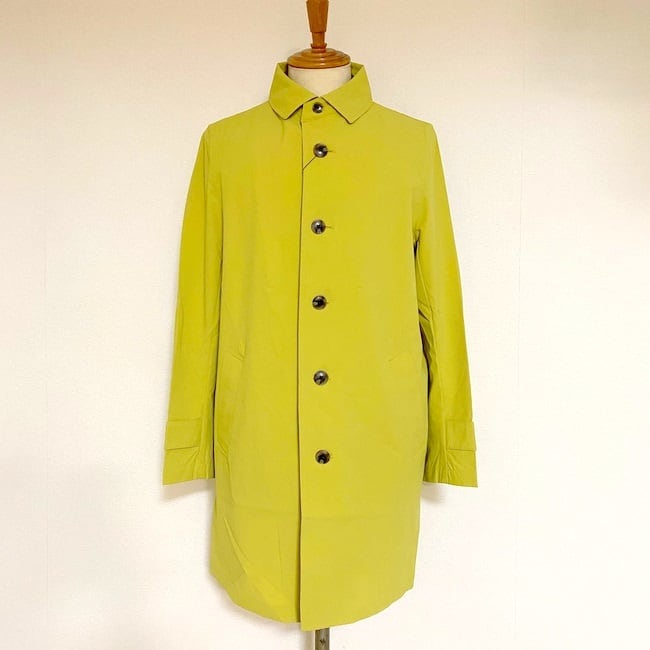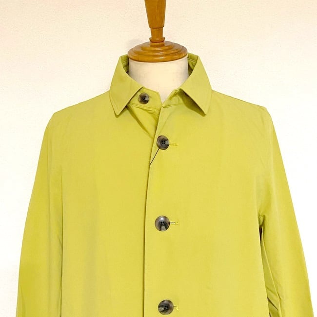 縦横共にナイロン/ポリウレタン糸を使用して伸縮性に優れた素材を使用したステンカラーコート。ハリコシがあり、ナイロン特有のサラッとしたドライタッチとマットなルックスが特徴で、接触冷感機能もあります。
