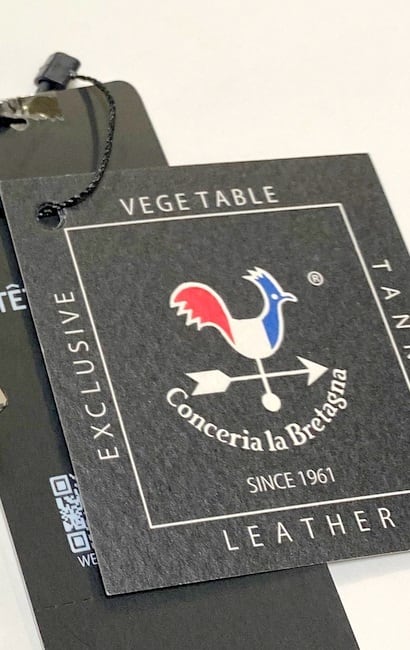 同社のトレードマークである風見鶏は、創業当時に、風見鶏の多い街として知られているフランスのブルターニュ地方から原皮を仕入れていたことに由来。マークの色がトリコロールカラーになっているのもそのためです。