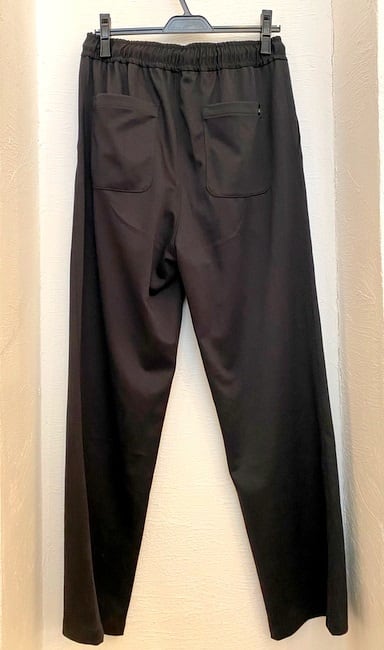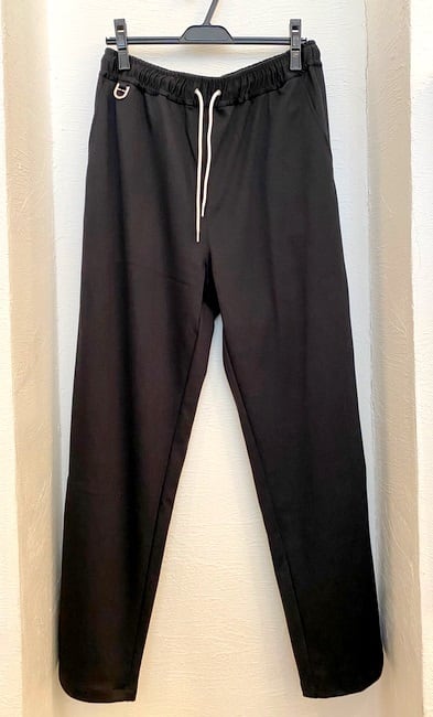ポリエステル×コットンのジャージ素材を使用したイージーパンツ。すべすべとしたジャージ生地は高級感があり、通常のジャージとは一線を画します。
