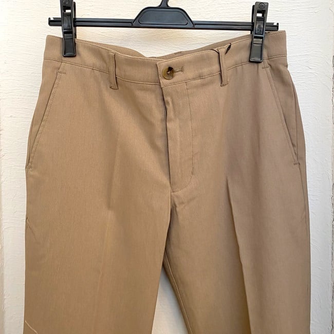 ツイル素材ならではの上品な光沢感と程よい厚みで、スリムシルエットを綺麗に保ってくれるスラックスパンツ。