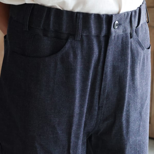 タテ 10/-×ヨコ 20/-の8オンスデニム。程よいスラブ感でライトオンスながら、デニムらしいムラ感があります。