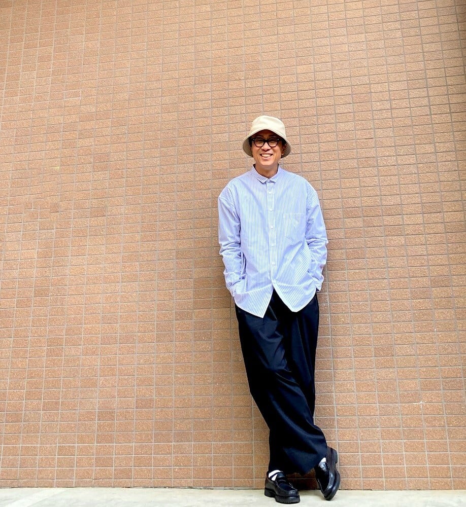 ワイドながら裾に向かって細くなるテーパードシルエットがリラックスしすぎず上品な印象にします。