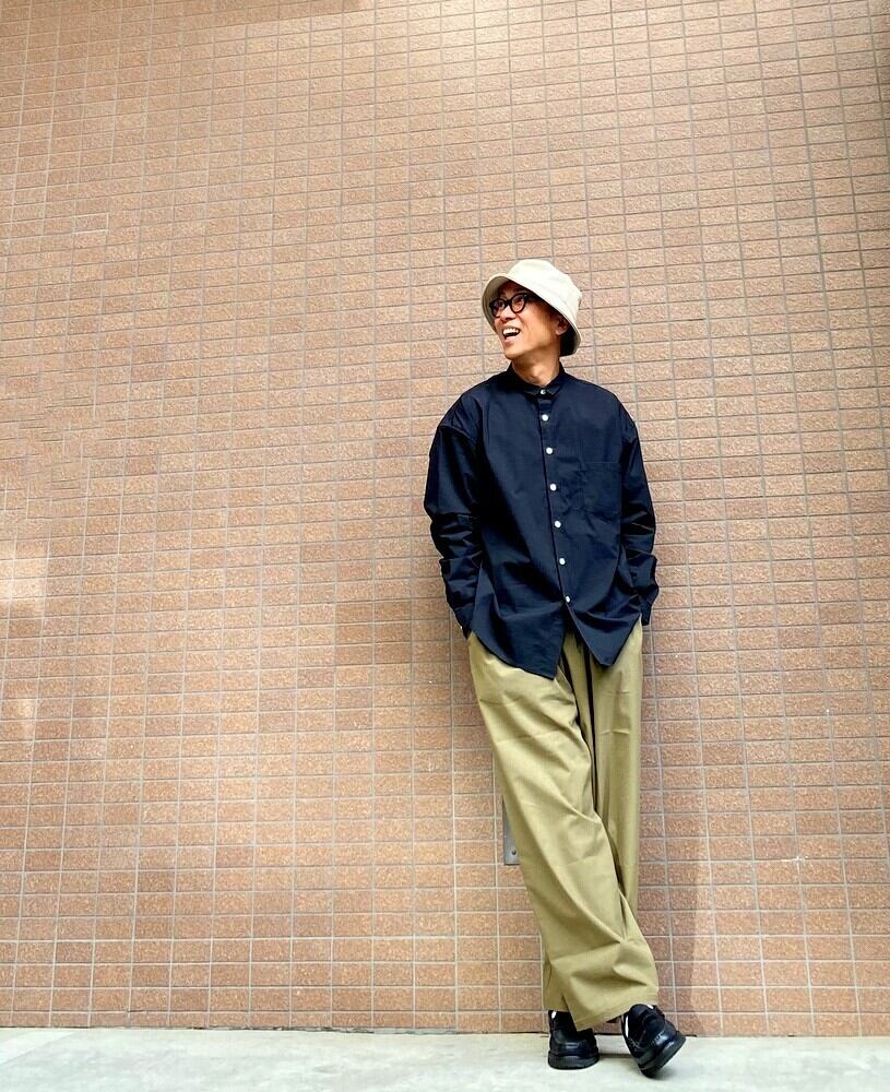 ワイドながら裾に向かって細くなるテーパードシルエットがリラックスしすぎず上品な印象にします。