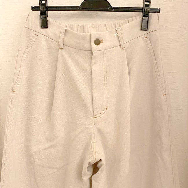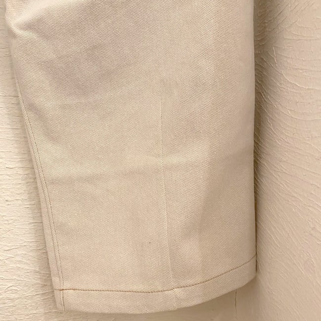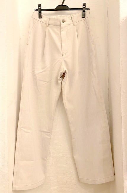 裾にはダーツを入れることで、通常のスラックスパンツとは違ったこなれ感のあるシルエットを実現しています。どんなアイテムとも相性が良いのでベーシックスタイルからストリートスタイルまで幅広い着こなしに対応できる万能アイテムです。