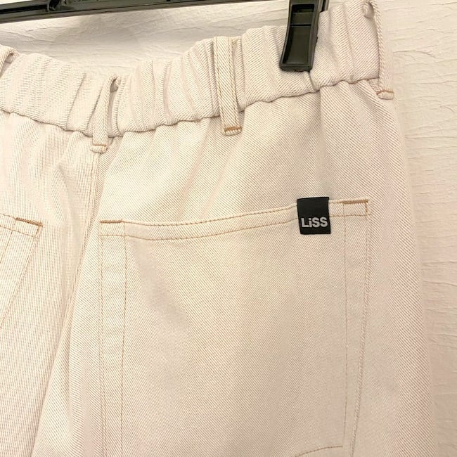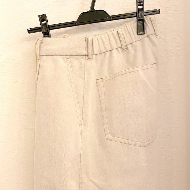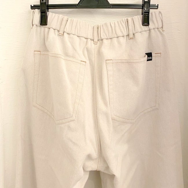 デニム素材を使用した立体カーブパンツ。