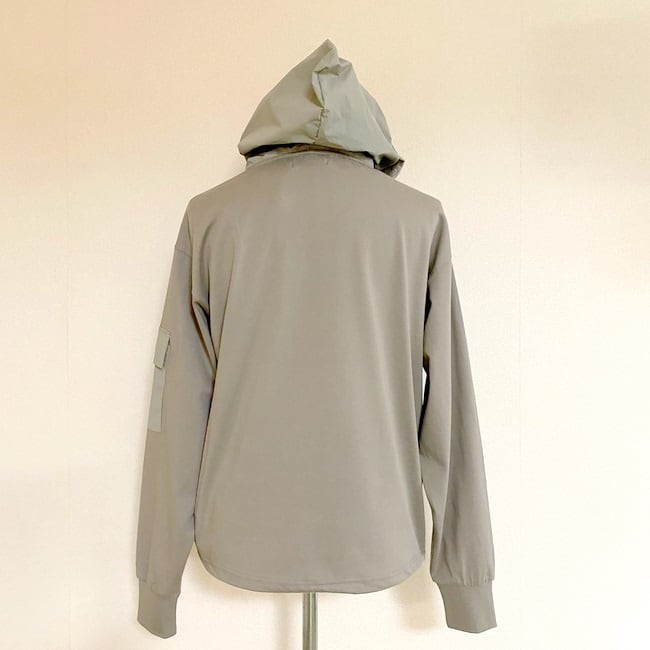 ドロスト付き布帛切替フーディー