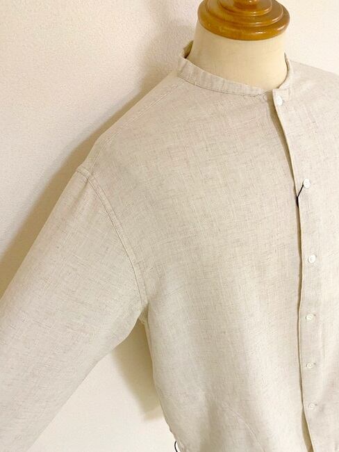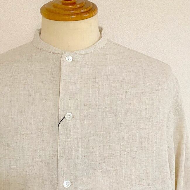 コットンリネンスラブシャンブレー バンドカラーシャツカーディガン