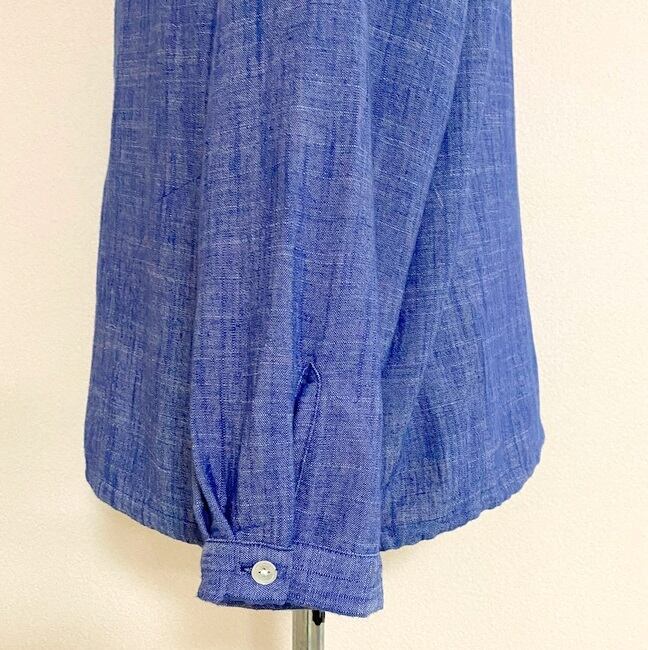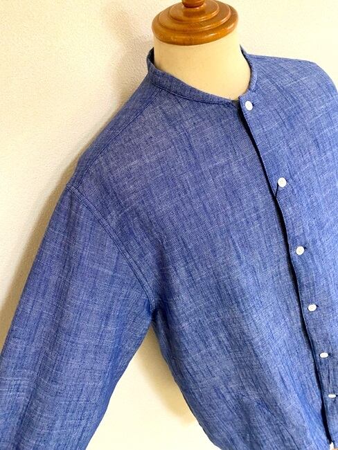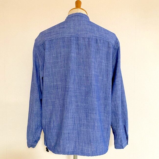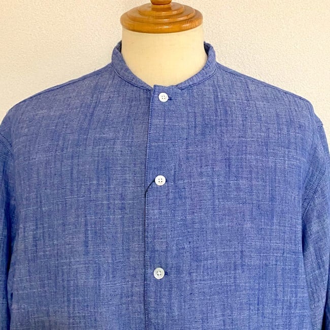 コットンリネンスラブシャンブレー バンドカラーシャツカーディガン