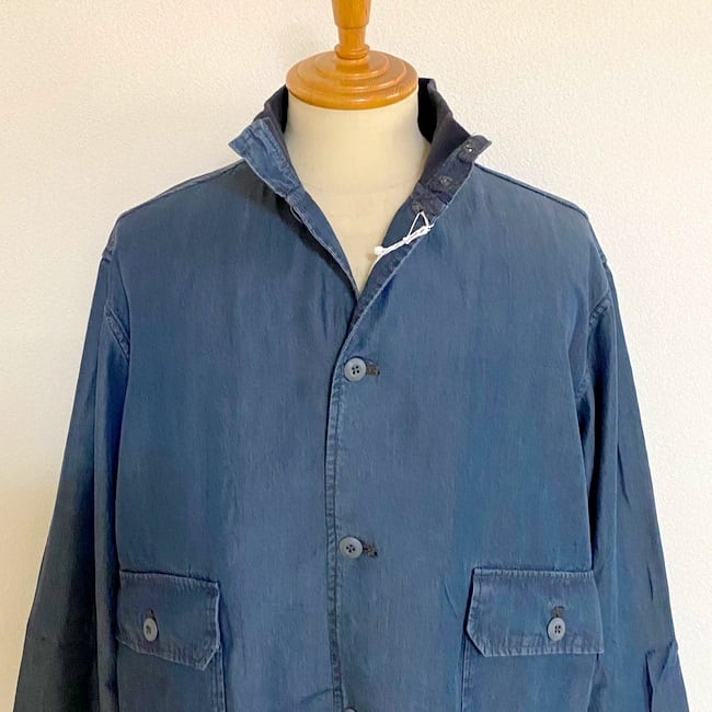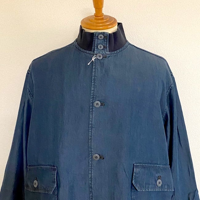 裏地無しで仕立てた軽く羽織れるライトアウターです。大きめのポケットは実用性だけでなくデザインアクセントとしても機能しています。