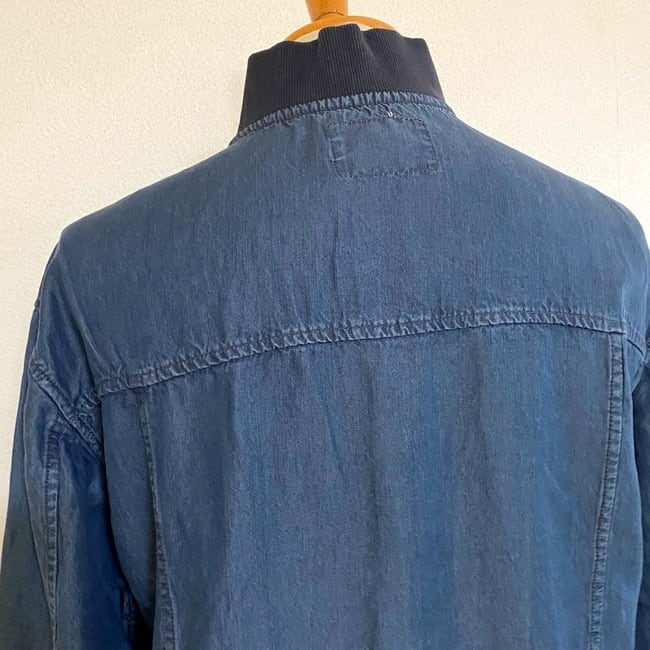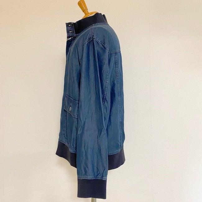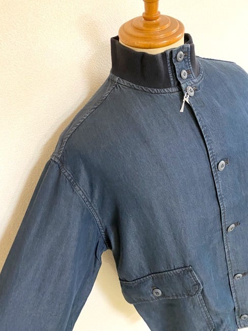 柔らかく落ち感のあるテンセルデニム生地を使用したハイネックデザインのブルゾン。