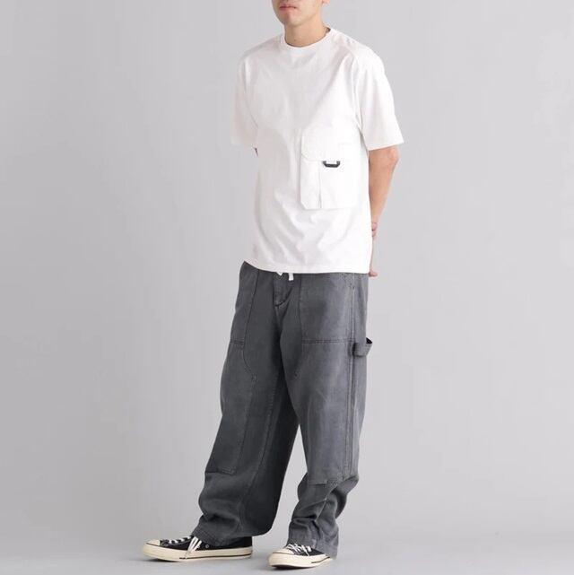 ・顔料染めによるヴィンテージ風の色落ち感が特徴のポケット付きTシャツ。